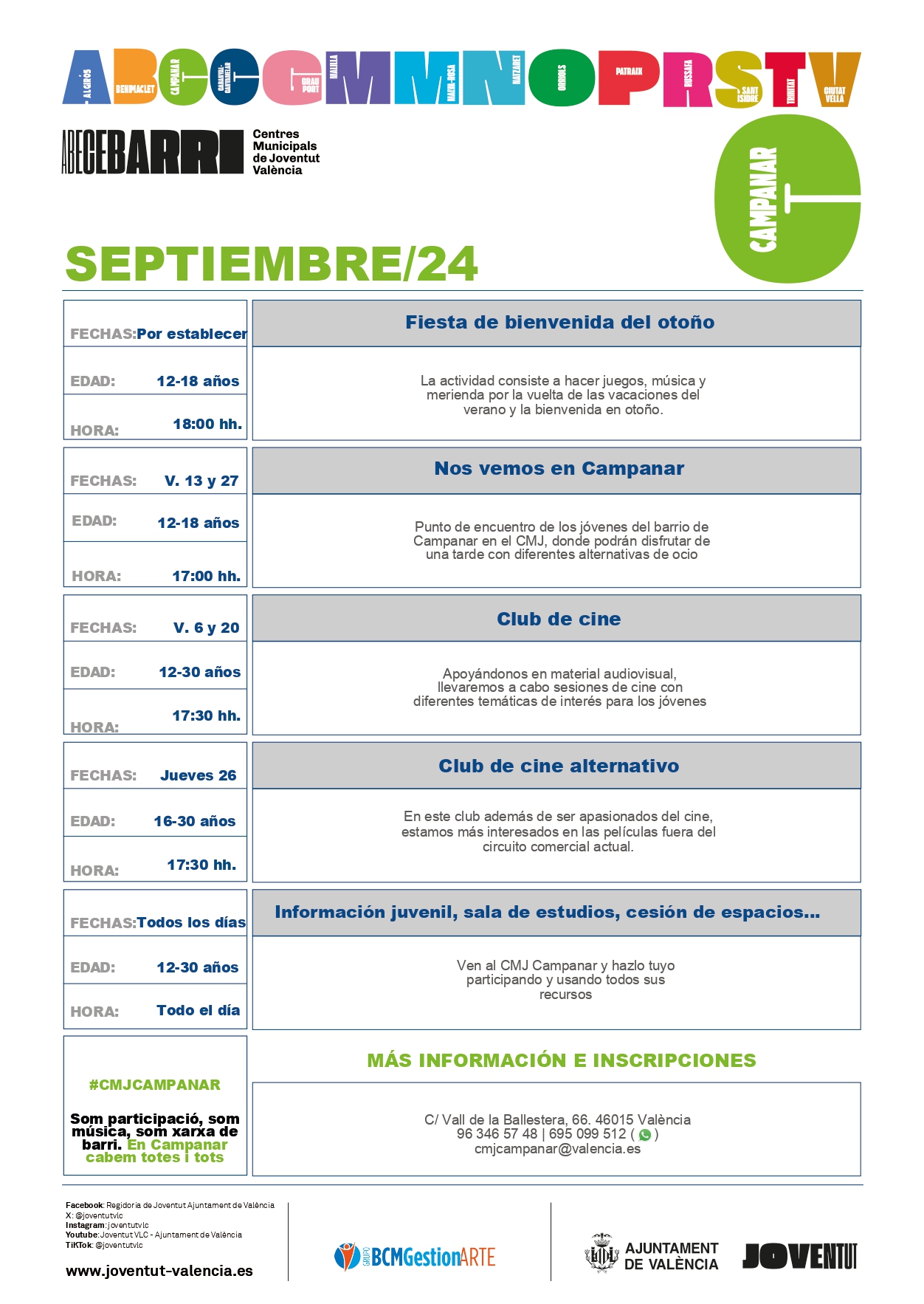 ¡Entrad al CMJ Campanar a disfrutar de un espacio que es VUESTRO!