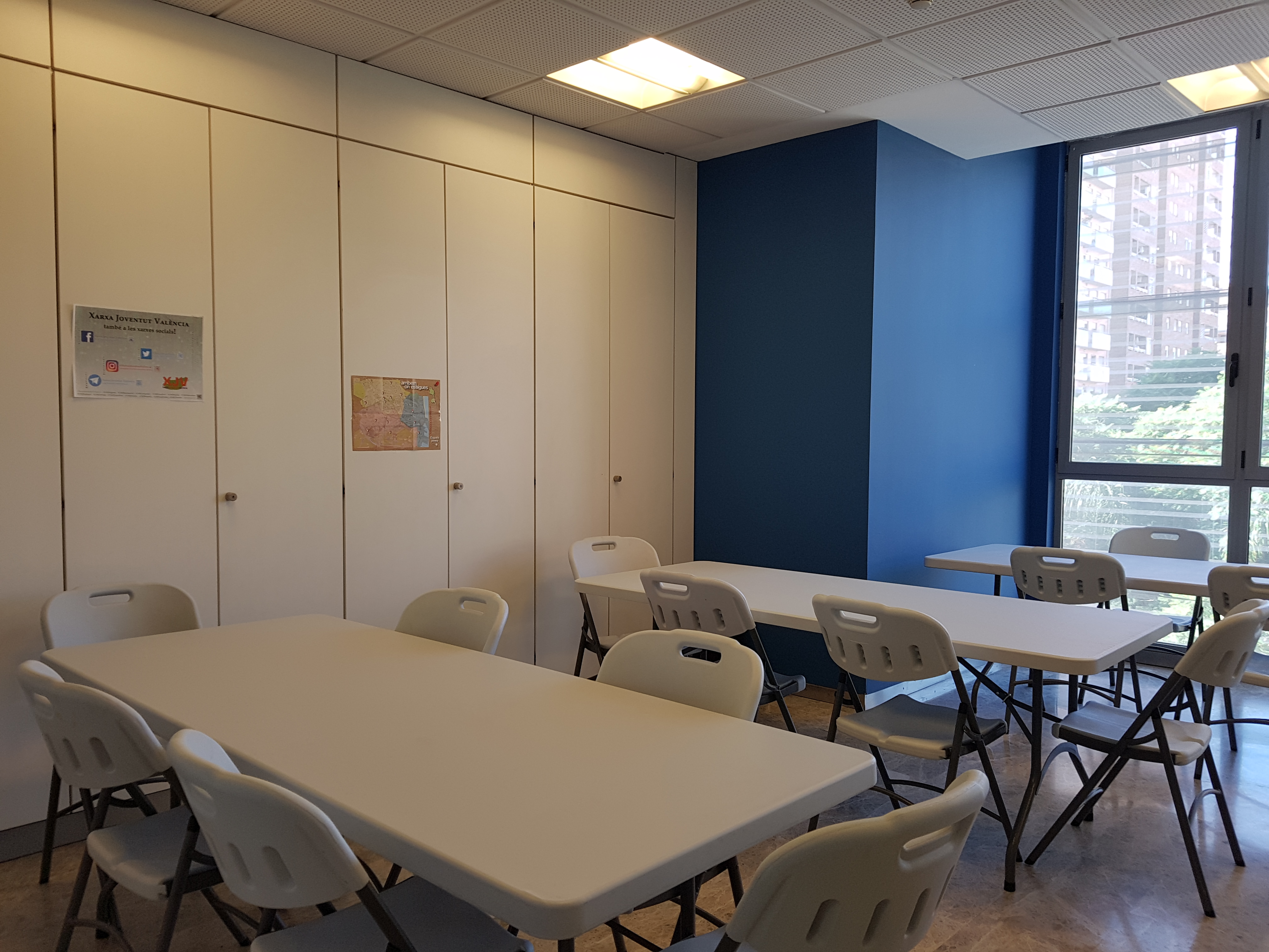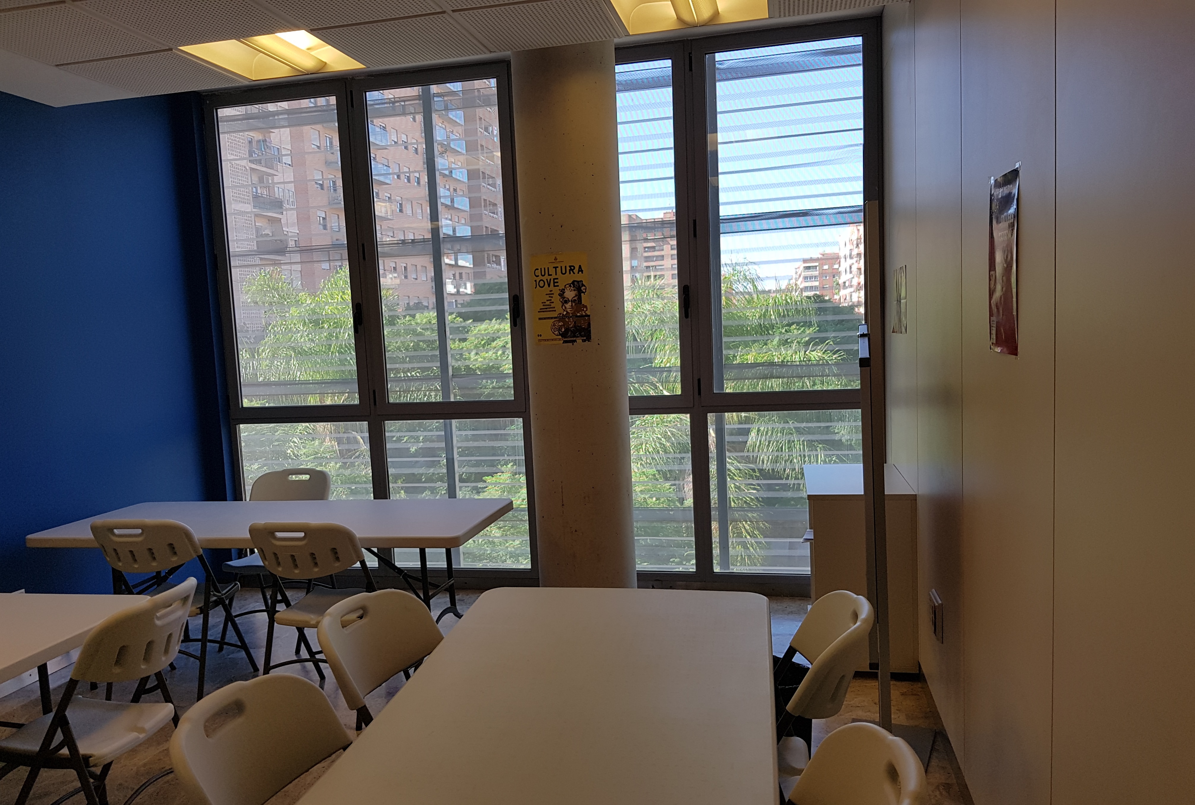 En un solo espacio podrás encontrar el CMJ Algirós, el Consell de la Joventut de València, sala de estudio, sala de exposiciones, aula de informática, aulas polivalentes, cafetería y más.